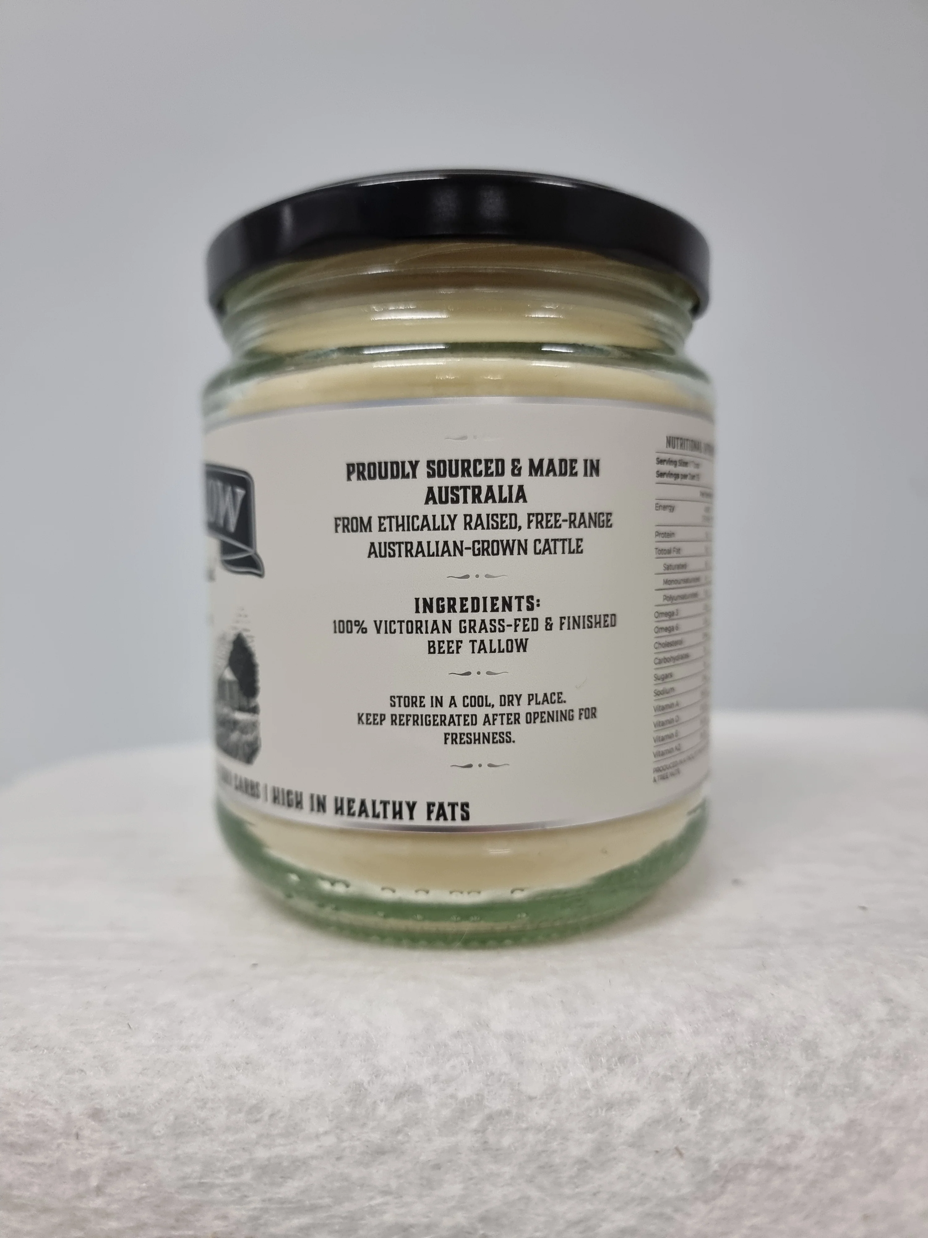 Beef tallow is supplied in a sealed container to protect freshness and quality. Store in a cool, dry place or refrigerate after opening if preferred.Β